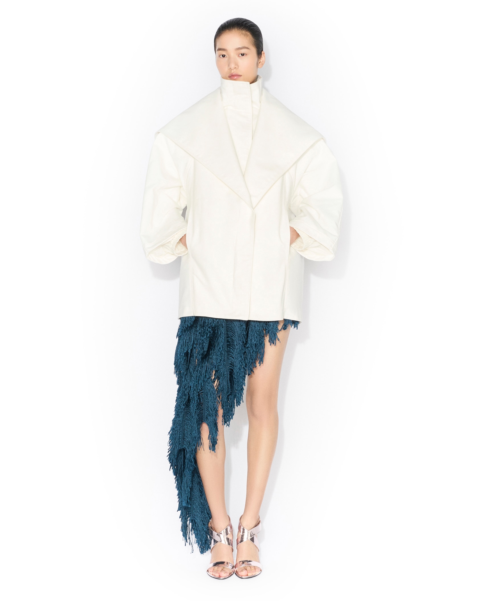 Can be worn as a traditional hooded jacket, or fully opened and draped as a cape