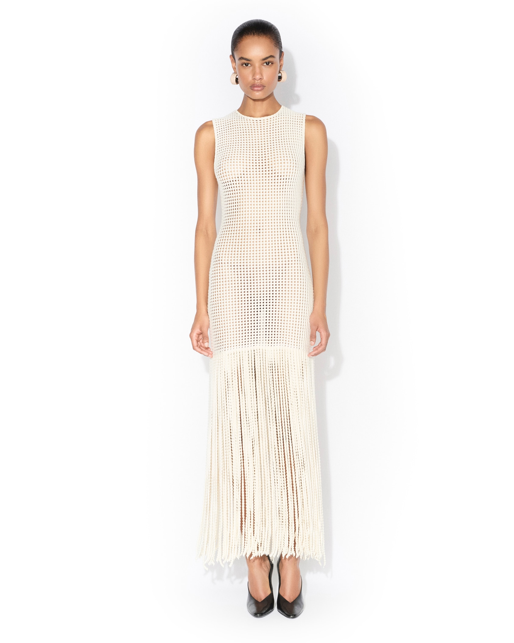 FRINGED BEADED KNIT DRESS