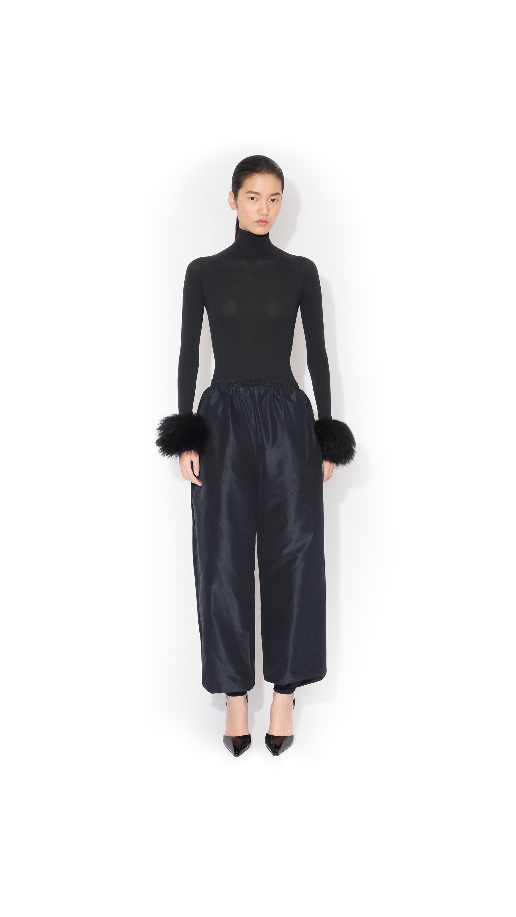 FUR CUFF SECOND-SKIN KNIT BODYSUIT